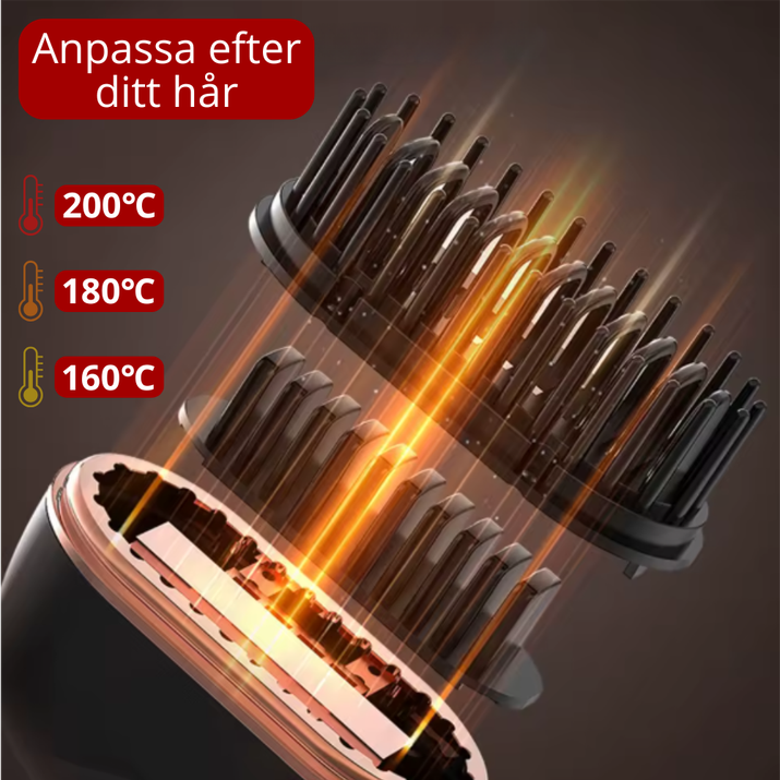 - 3 värmenivåer 160°C, 180°C, 200°C Perfekt kontroll för alla hårtyper.